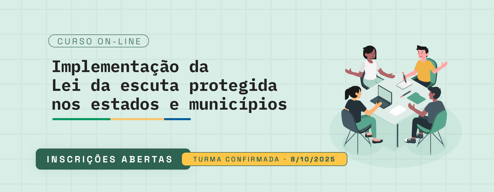 Inscrições abertas para o curso de Escuta Especializada para profissionais que atuam na rede de proteção de crianças e adolescentes vitimas ou testemunhas de violências.